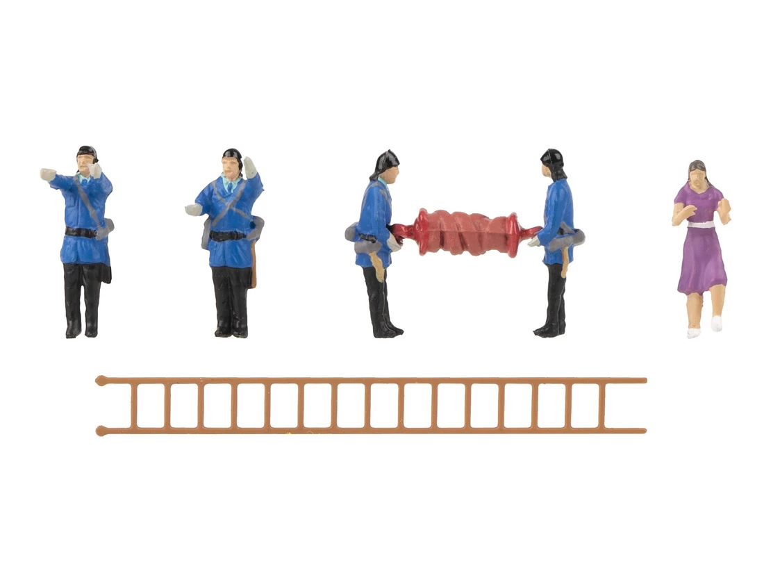Modell: Spur H0. Feuerwehrkräfte in der Epoche III. Dieses Set enthält 5 detaillierte Figuren, darunter 4 mutige Feuerwehrmänner und ein realistisch gestaltetes Brandopfer. Mit diesem Set können Sie realitätsnahe Feuerwehreinsätze in Ihrem Modellbahndorf nachstellen. Die Feuerwehrmänner sind in ihren authentischen Uniformen gekleidet und mit den typischen Ausrüstungen ausgestattet. Ob es um Brandbekämpfung, Rettung oder Einsatzleitung geht, diese Figuren sind bereit, um in jeder Situation zu helfen. Jede Figur wurde mit viel Liebe zum Detail handbemalt, um eine höchstmögliche Realitätsnähe zu erreichen. Das Highlight dieses Sets ist die mitgelieferte Leiter, die eine weitere Dimension in Ihre Modellbahnszene bringt. Nutzen Sie die Leiter, um Rettungsaktionen in der Höhe darzustellen oder um auf die höher gelegenen Stockwerke von Gebäuden zuzugreifen. Die Leiter ist robust und lässt sich leicht anpassen, um sie nach Ihren Bedürfnissen zu positionieren. Mit dem Feuerwehrkräfte Set in Epoche III erhalten Sie nicht nur eine hochwertige Ergänzung für Ihre Modellbahnanlage, sondern auch die Möglichkeit, realistische Rettungs- und Einsatzszenarien zu inszenieren. Dieses Set ist perfekt für Modellbauer und Liebhaber der Epoche III, die ihre Sammlung erweitern möchten. Sichern Sie sich dieses Set und verleihen Sie Ihrer Modellbahnanlage das gewisse Extra!
