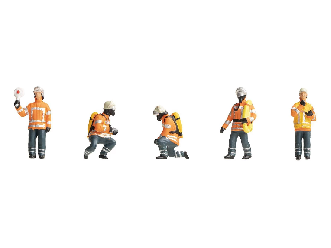Modell: Spur H0. Figurenset Feuerwehrkräfte. Modelle aus Kunststoff, farblich gestaltet.