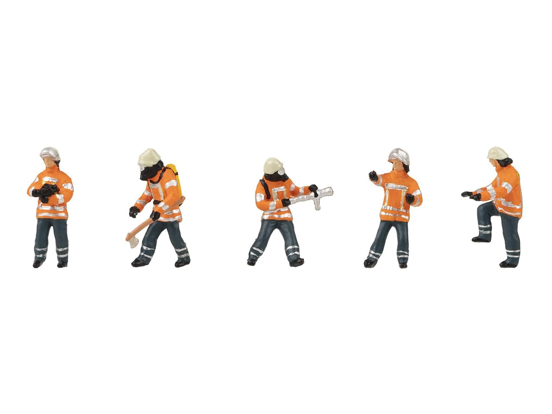 Modell: Spur H0. Figurenset Feuerwehrkräfte. Modelle aus Kunststoff, farblich gestaltet.