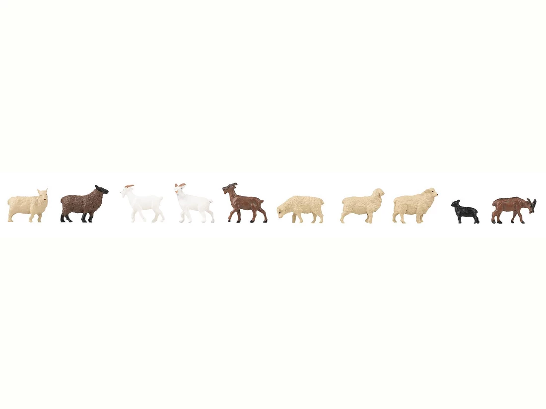 Modell: Spur H0. Figuren Schafe und Ziegen. Modelle aus Kunststoff, farblich gestaltet.