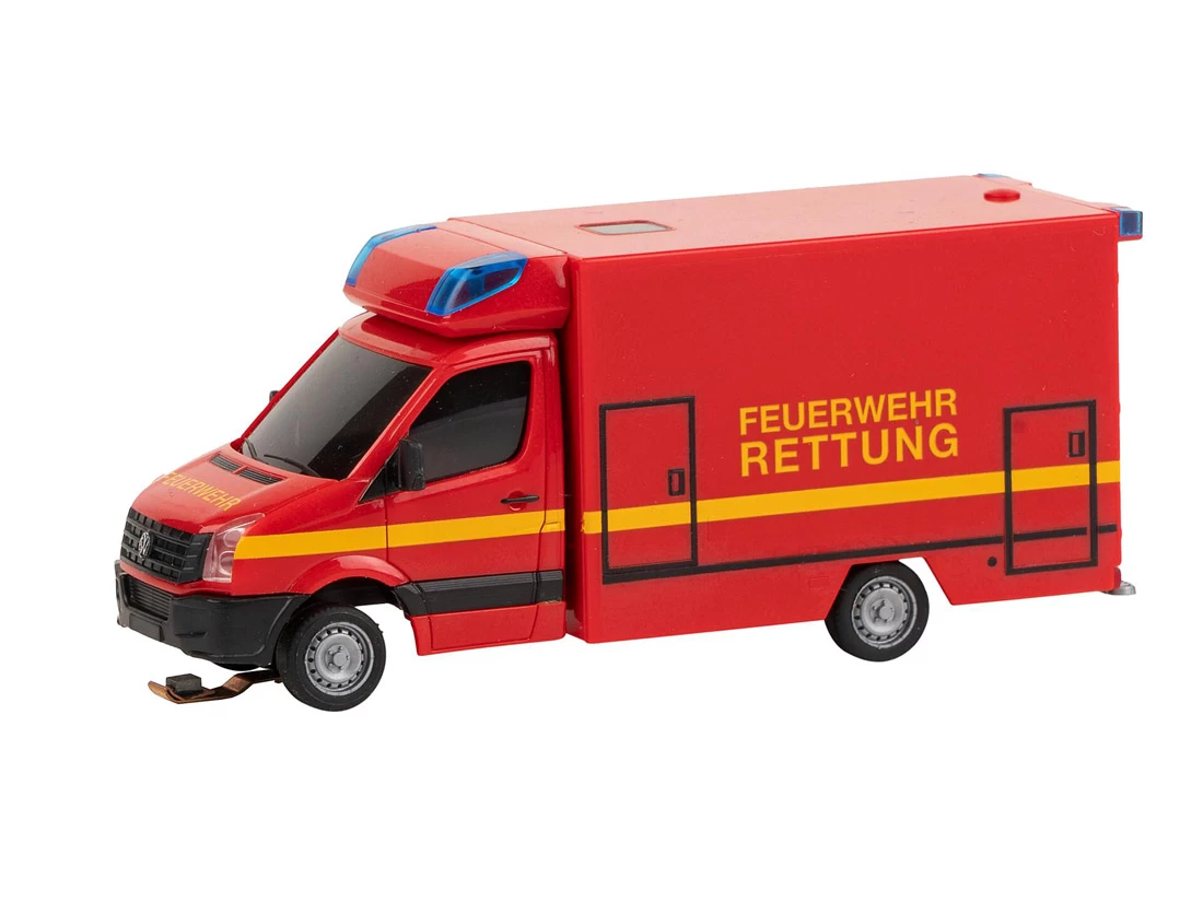 Modell: Spur H0. VW Crafter mit Fahrtec Rettungskoffer für den Feuerwehr-Rettungseinsatz. Ohne Blinkelektronik.