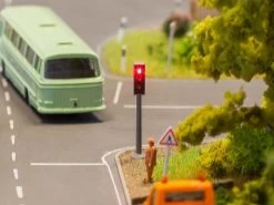 Modell: Spur H0. Zwei Ampeln mit LED-Lichtsignalen in den Farben grün, gelb und rot. Gleichermaßen geeignet für Car System und Car System Digital. Durch den Anschluss an die Lichtsteuerung Traffic-Light-Control, Art. 161654 lassen sich internationale Signalabfolgen mit drei (grün/gelb/rot) Signalisierungszuständen darstellen. Durch den Anschluss mit Vorwiderständen an ein Erweiterungsmodul, Art. 161352 lassen sich internationale Signalabfolgen mit drei (grün/gelb/rot), vier (grün/gelb/rot/rot-gelb) oder fünf (grün/grün blinken/gelb/rot/rot-gelb) Signalisierungszuständen darstellen.