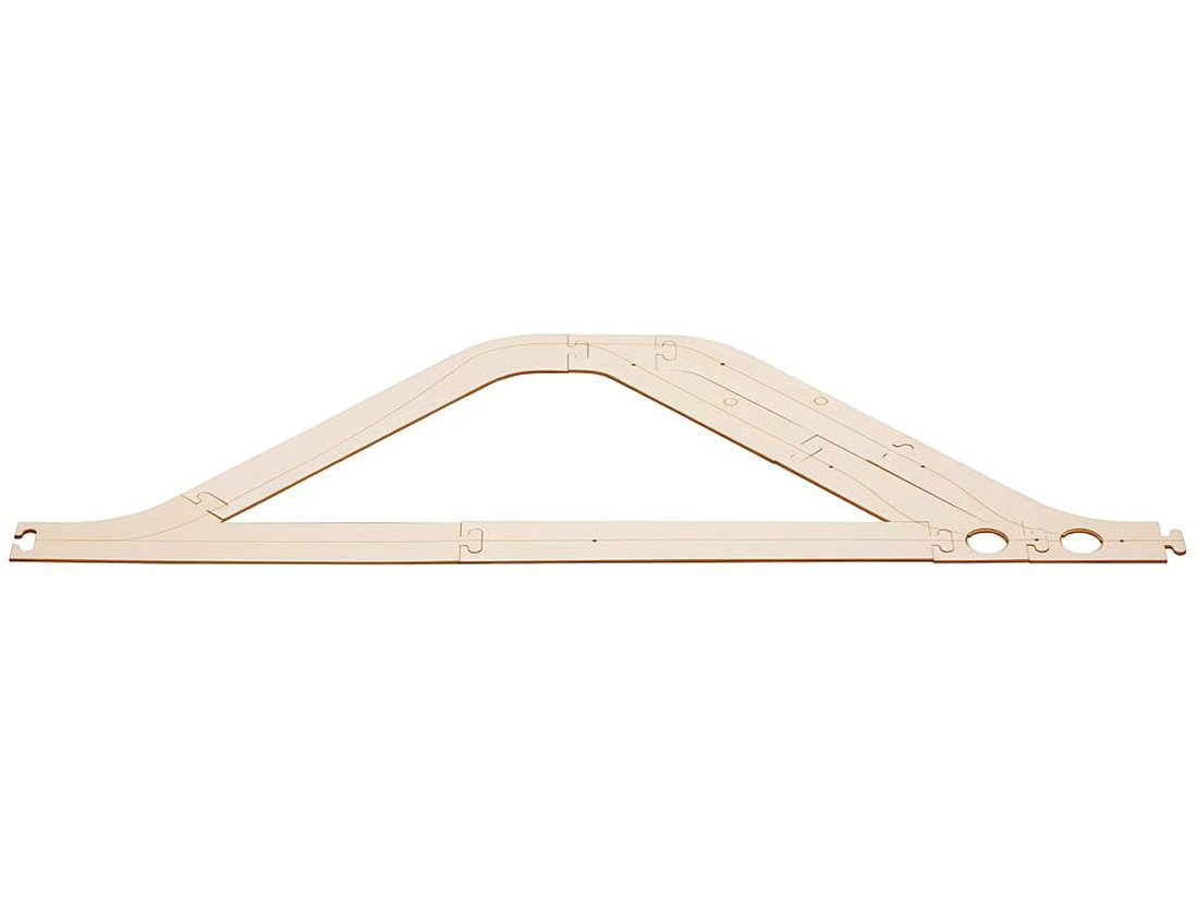 Modell: Spur H0. Mit diesen durch Zusammenstecken leicht zu verarbeitenden Straßenteilen, die bereits die Rille für den Fahrdraht enthalten, lassen sich unterschiedliche 1- und 2-spurige Straßenverläufe bauen.