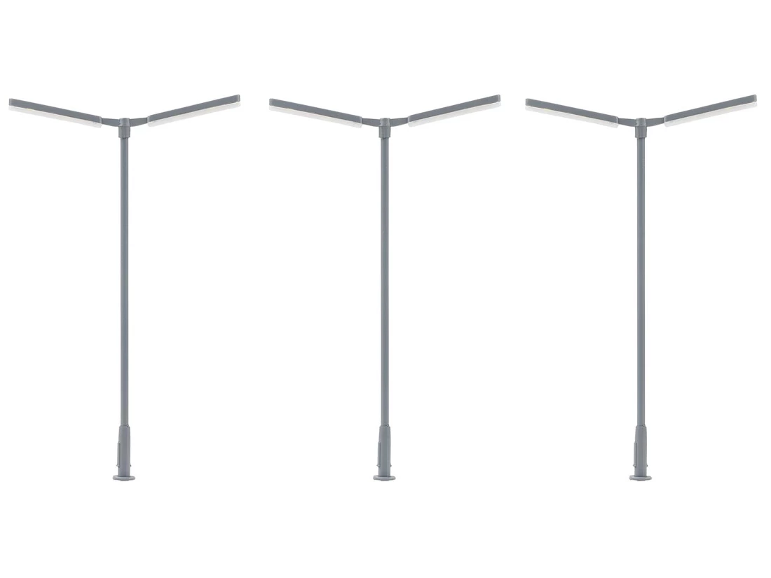 Modell: Spur H0. Die moderne und weitverbreitete Neonleuchte ist das ideale Accessoire zur Ausgestaltung von Stadt-, Straßen- und Industrieszenerien. Der Mast, aus robustem Metall gefertigt, bietet Stabilität und Langlebigkeit. Dank der variabel einstellbaren Leuchtenhöhe können Sie die Leuchte ganz nach Ihren Vorstellungen anpassen. Die filigran gestaltete Leuchte verfügt über eine einflammige LED-Technik, die nicht nur für eine gleichmäßige und helle Beleuchtung sorgt, sondern auch äußerst langlebig ist. Sie werden von der Qualität und dem konstanten Lichtstrom beeindruckt sein.