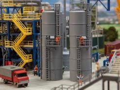 Modell: Spur H0. Platzsparend! Vertikal aufgestellter, begehbarer Zylindertank für die Lagerung von Flüssigkeiten oder Gasen, ausgestattet mit Rührwerk, Rohrleitungen und Leitern. Verwendbar bspw. für die Darstellung der Themenbereiche Lebensmittel-, Getränke- oder Chemieindustrie.