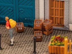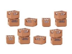 Modell: Spur H0. Set mit 12 baugleichen, stapelbaren Kunststoff-Getränkekästen mit Flascheneinsätzen.
