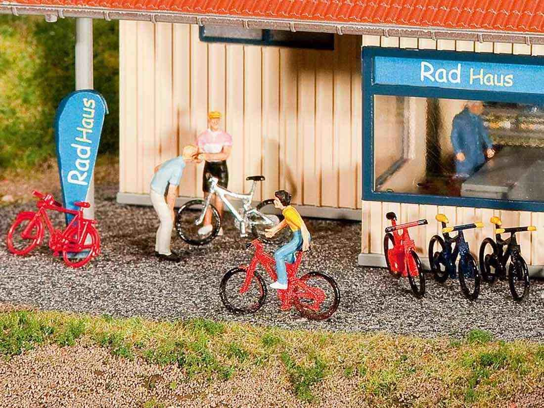 Modell: Spur H0. Moderne Fahrräder (Mountain-Bikes) zur Ausgestaltung von vielen kleinen Szenen auf der Modellanlage verwendbar.