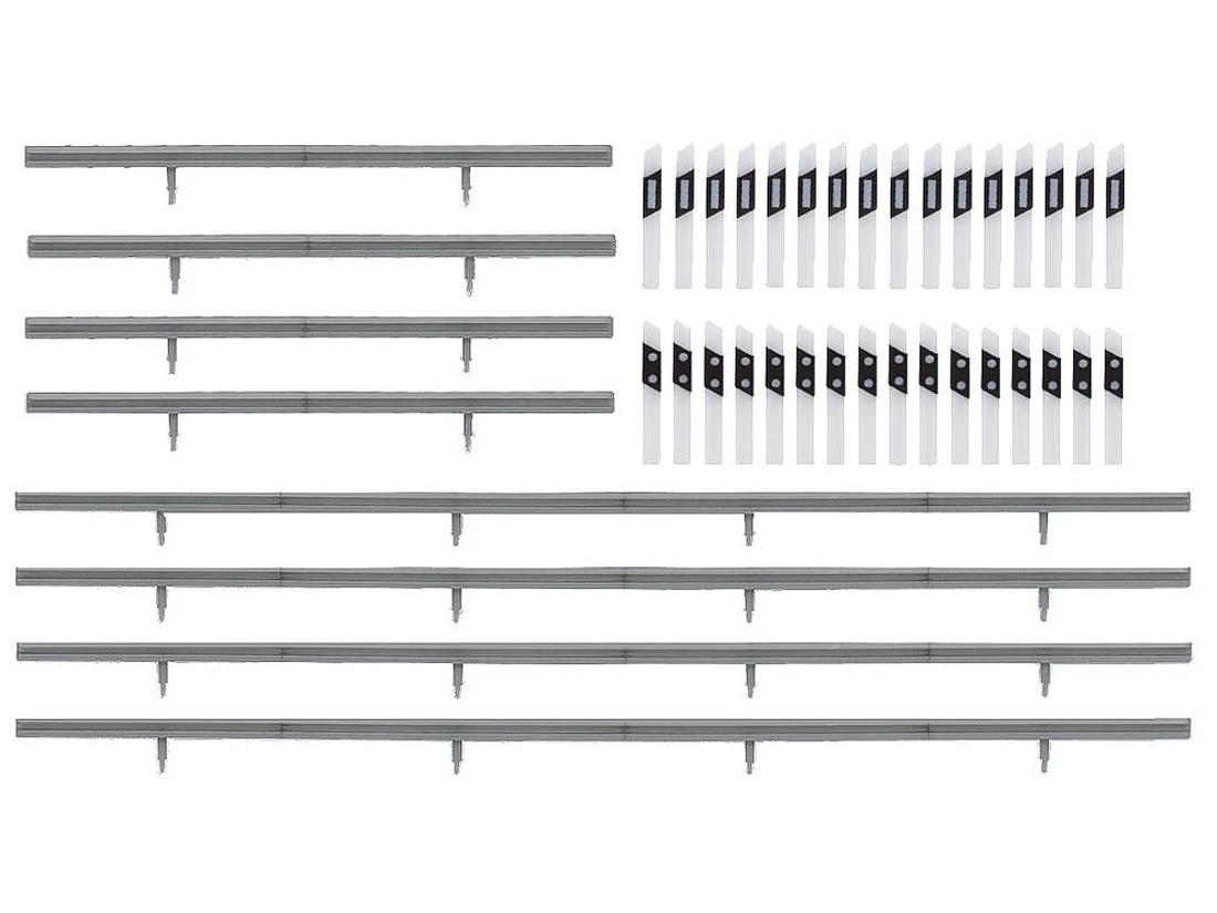 Modell: Spur H0. Leitplanken und Begrenzungspfähle zur Fahrbahnabsicherung.