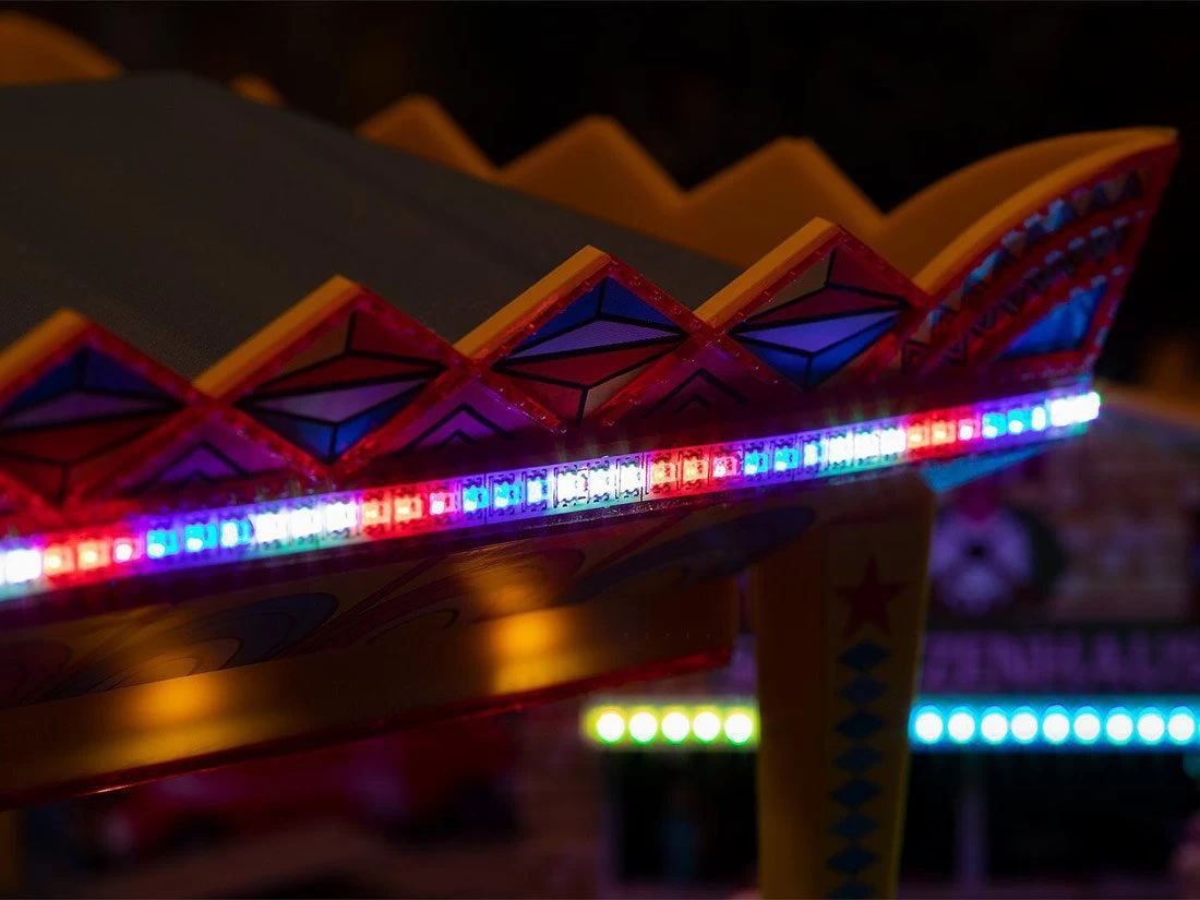 Technische Daten: – RGB-LEDs, Full Color, 24 Bit – Anzahl LEDs: 150 – Maße Lichtstreifen: 500 x 4 x 1,2 mm.