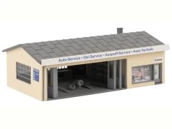 Modell: Spur H0. Service rund um’s Auto! 4-teiliges Themen-Set mit Kleinbetrieben in einem Gewerbegebiet. Vom Autohaus mit großem Schaufenster, über einen Waschplatz mit zwei SB-Autowaschboxen, bis hin zur zweiständigen Kfz-Werkstatt mit Büroräumen und einem umzäunten Schrotthandel bereichern zahlreiche Fachbetriebe den kleinen Gewerbepark.