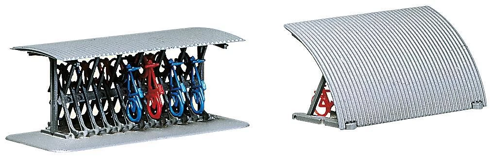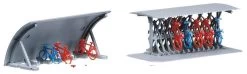 Die beiden Radständer mit den 16 Fahrrädern sind Ausschmückungsdetails, die wohl auf jeder Anlage an vielen Plätzen für noch mehr Realität in der Modellwelt sorgen.