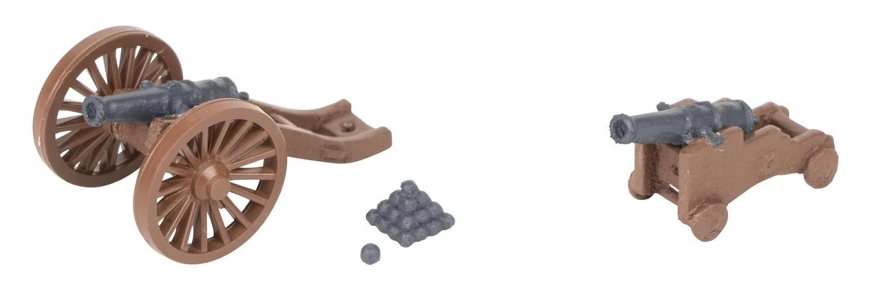 Mobiles Artilleriegeschütz. Drei historische Kanonenmodelle, die wahlweise als Feld- oder als Festungskanonen aufgebaut werden können. Passend z. B. für die Ausgestaltung des Modells »Schloss Bran«, Art. 130820.