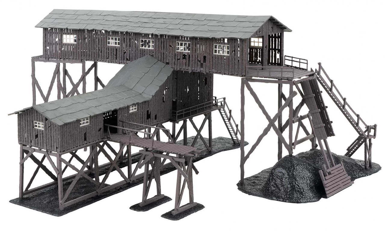 Modell einer Kohlemine in Holzbauweise mit mehreren Be- und Entlademöglichkeiten.