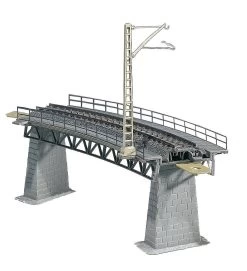 Dieser Bausatz enthält: 4 gerade und 8 gebogene Gleisbetten, je 2 Pfeiler 15, 25, 35, 45, 55 und 65 mm, 4 Pfeiler 75 mm, 6 Pfeilerkopfstücke 8 mm zur Verlängerung auf das Höhenmaß der FALLER-Brücken und Verbindungslaschen für die Gleisbetten. Die Gleisbetten sind für die Aufnahme von Modell- und C-Gleisen geeignet. Zur Verlängerung einer Auf- bzw. Abfahrt sind weitere Pfeiler (Art. 120473), gerade Gleisbetten (Art. 120474) und gebogene Gleisbetten (Art. 120476) erhältlich.
