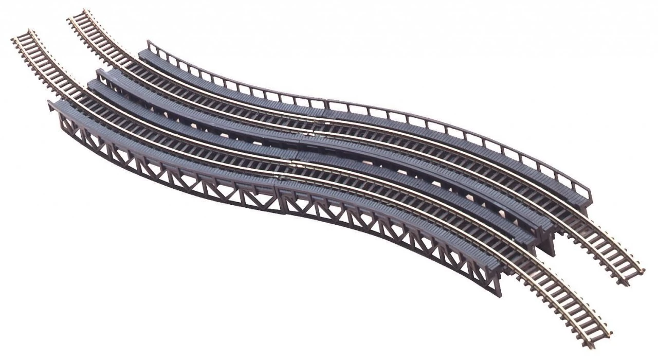 4 Gleisbetten, 30°, 2 x R 195 mm, 2 x R 225 mm.