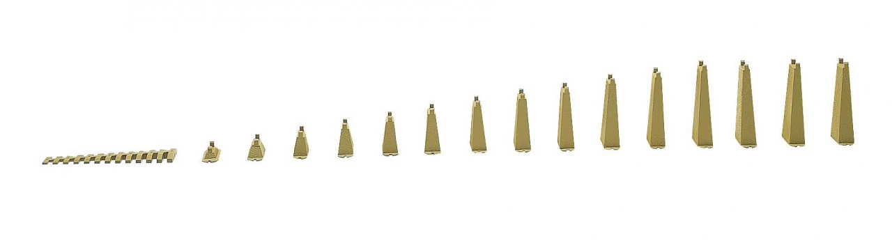 Auffahrtspfeiler-Set mit flexiblem Anfangskeil, 11 Pfeilern von 5 – 55 mm (5 mm Stufung) und 4 Pfeilern je 60 mm.