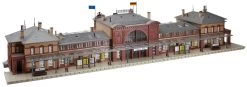 Viele AusschmĂŒckungsteile, die das Bahnhofsbild realistisch beleben: Zuglaufanzeige, Lautsprecher, Uhren, Papierkörbe, Wagenstandsanzeigetafeln, BĂ€nke, Fahrplantafeln, beleuchtbarer Kiosk, KofferschlieĂfĂ€cher, Fahrkartenschalter und diverse Werbeschilder. Besonders interessante Effekte ergeben sich durch die Beleuchtung des mittleren EmpfangsÂgebĂ€udes. AuĂerdem sind hier auch der Kiosk und die FahrkartenÂschalter beleuchtbar. Die Zwischen- und EckgebĂ€ude sind ebenfalls beleuchtbar. Der Aufbau dieses groĂen Modells wird dadurch wesentlich vereinfacht, dass die 5 GebĂ€udekomplexe einzeln zusammengeklebt und erst dann zum GeÂsamtmodell zusammengestellt werden.