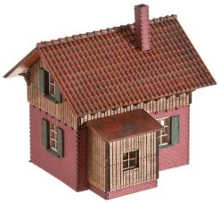 Bahnwärterhäuschen in Klinkerbauweise, passend zu den Klinker-Bahnbauten. Material-Mix aus kolorierten Kunststoff-, Holz- und Spezial-Kartonteilen.