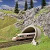 Bogenbrücke mit 2 Vorflutbrücken und Pfeilern (wie Art. 222548) 4 x 10 und 4 x 5 mm. Die 3 Teile der Brücke können auch einzeln eingesetzt werden. 2-gleisige Bauweise ist möglich, zusätzlich 1 x Art. 222540 notwendig. Halterungen für Oberleitungsmasten liegen bei.