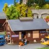 FALLER-Highlight neu gestaltet. Drei-ständiger Lokschuppen im Fachwerk-Stil mit rückseitigem Wasserturm. Geeignet für Loks bis 162 mm LüP. Torhöhe: 36 mm, Gleismittenabstand: 37 mm. Für die weitere Gestaltung liegen dem Set zwei Hebeböcke, ein Rohrblasgerüst, ein Wasserkran und ein Lademaß bei.