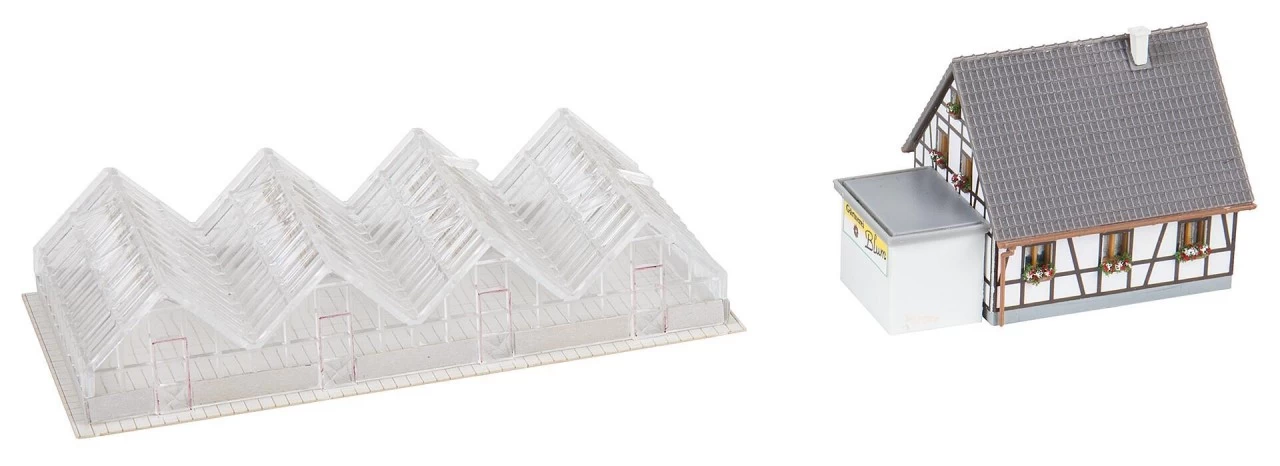 Ganzjährige Pflanzzeit. Schmucker kleiner Gartenbaubetrieb bestehend aus einem Fachwerkwohnhaus mit Garage sowie 4 gläsernen Gewächshäusern, die den Anbau diverser Pflanzen, Obst- und Gemüsesorten sicherstellen. Diverse Zubehörteile zur Ausschmückung liegen bei.