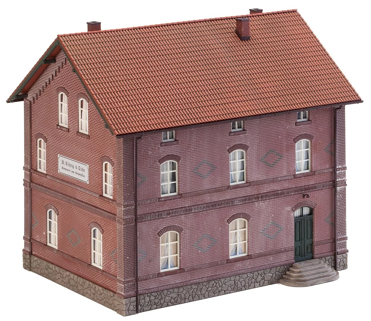Zweigeschossiger Backsteinbau mit Satteldach auf einem Steinsockel beherbergt den Betrieb des Klempners und Heizungsbauers Röhrig. Für die ausgewogene Fassadenkomposition sorgen Pilaster- und Gesimsgliederung, gemauerte Bogenstürze sowie ein Klötzchenfries unter der Traufe. Eine im Digitaldruckverfahren erstellte großformatige Reklame auf der Giebelseite sowie farbige Steine, die in der Vermauerung ein Rautenmuster bilden, tragen zum Wiedererkennungswert des Modells bei.