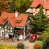 Zwei mit Begrenzungslinien bedruckte Bahnsteigplatten mit Pflastersteinbelag. Für die Bahnsteig-Enden liegen Rampen mit zwei unterschiedlichen Neigungen bei. Moderne Ausschmückungselemente, wie Zugzielanzeiger, Fahrkartenautomaten, Lampen, Infotafeln und Schilder liegen dem Bausatz bei. Die Bahnsteigbreite ist aufgrund von praktischen Sollbruchstellen variabel gestaltbar.