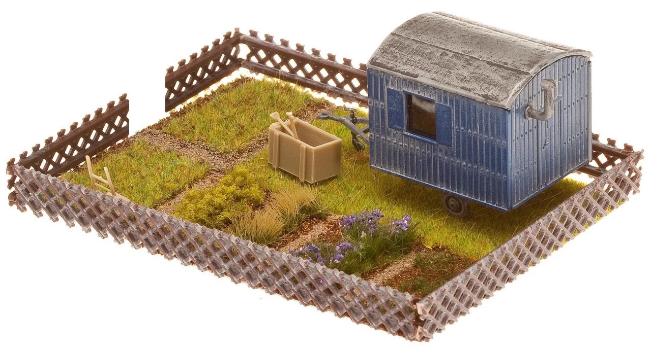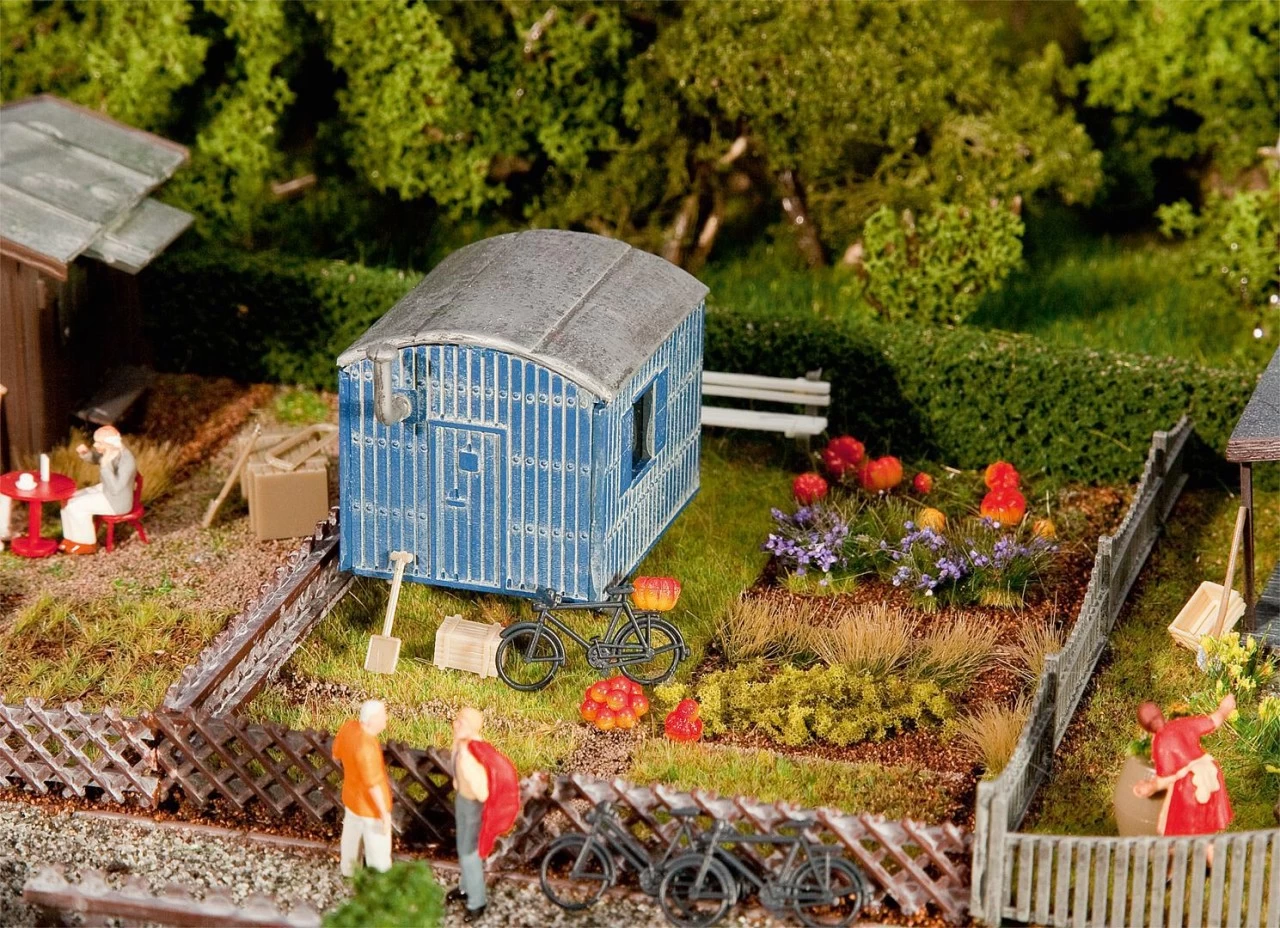 Charakteristischer Schrebergarten, der einzeln baubar ist und auch zu einer gröĂeren Siedlung erweitert werden kann. Sehr hĂ€ufig in Bahn- oder FluĂnĂ€he anzutreffen. Das Set wird ergĂ€nzt durch ein schönes Landschaftssegment und typisches Zubehör.