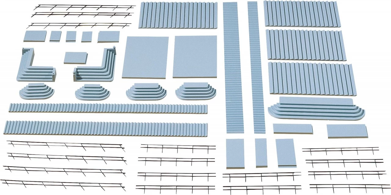 ĂŒberall, wo es rauf- und runtergeht, können diese verschiedenartigen Treppen- und Stufenteile eingesetzt werden. Mit passenden GelĂ€nderteilen.