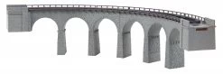 Die aus dunklem Kalkstein erbaute Brücke liegt an der Strecke von Tiefencastel nach Filisur im Schweizer Kanton Graubünden. Das Landwasserviadukt ist eine 136 Meter lange und 65 Meter hohe Eisenbahnbrücke der Rhätischen Bahn und gilt als ein Wahrzeichen der Bahngesellschaft. Das gebogene Viadukt besteht aus 2 Brückenteilen mit Gleisbetten, je 45° (auf 30° verkürzbar) und einem mittleren Radius von 193 mm. Die Durchfahrtshöhe mit Pfeilern beträgt 57 mm (6 Pfeiler à 38 mm). Die Brückenteile sind auch einzeln verwendbar. Das Viadukt-Set kann einspurig befahren werden und beinhaltet zudem 2 Tunnelportale, die das Set optimal abschließen.